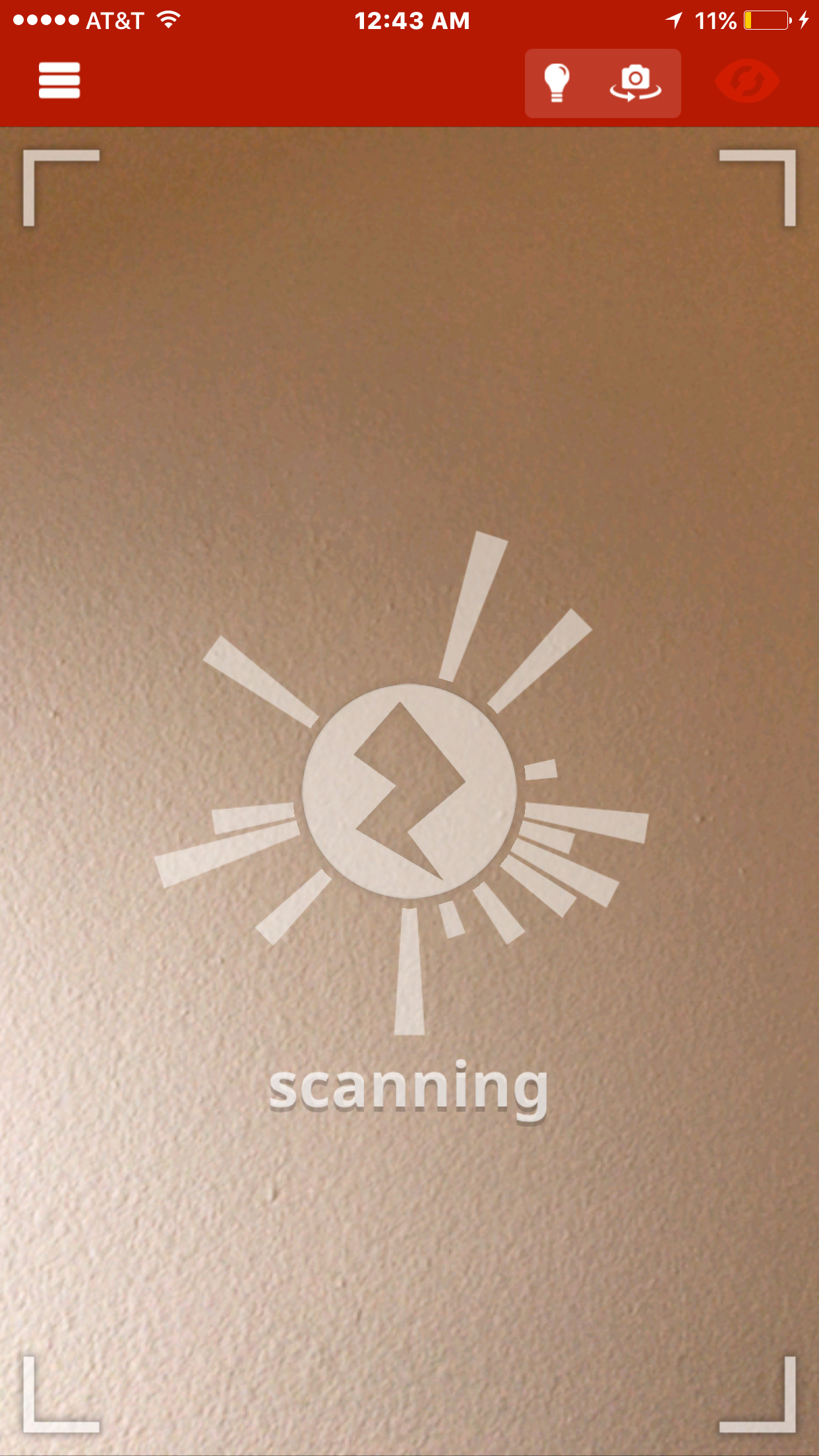 Zappar中出现的“scanning”(扫描中)的界面