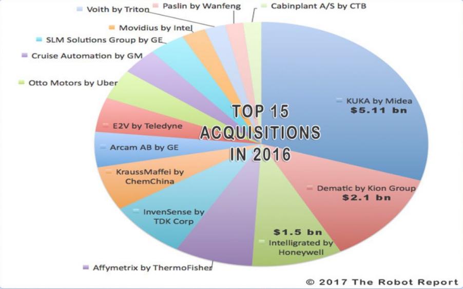 2016年机器人投资再创新高达19.5亿美元,50笔并购交易额达190亿美元