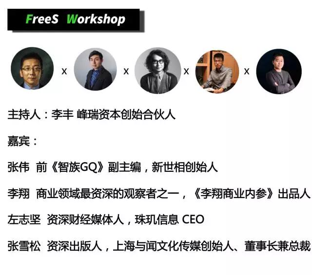 本文由 FreeS Workshop 之 「 内容创业闭门论坛 」上的分享整理而成,感谢四位分享嘉宾:新世相创始人张伟、《李翔商业内参》出品人李翔、珠玑信息 CEO 左志坚、上海与闻文化传媒创始人,以及主持人李丰。嘉宾们就三个话题深入讨论了三个多小时,所有分享内容将分三次放送,希望对内容创业者和对内容创业感兴趣的创业者能有帮助。