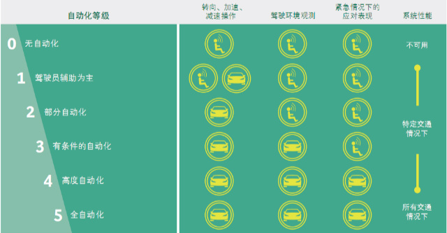 波士顿咨询曾总结过国际自动机工程学会界定的自动驾驶等级。0级全部需要人来操作,5级则完全不需要人来做任何操作。