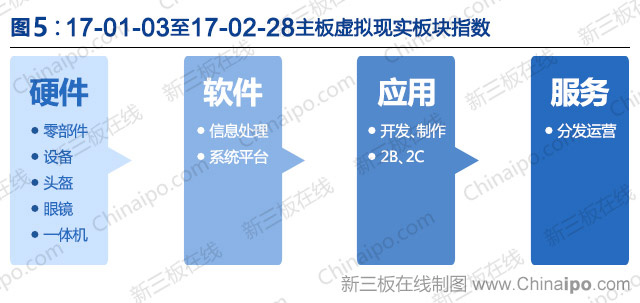 从2016年1月至2017年3月,A股虚拟现实板块环比下降10.76%,其指数收于807.04点。由于缺乏后续热点支持,2016年下半年主板市场涨幅相对较小。而2017年市场回暖,自2017年1月至2017年2月,环比上升3.560%。