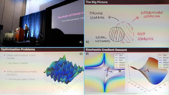 a)主讲人Alex Champandard;b) 深度学习与神经网络之关系图;
