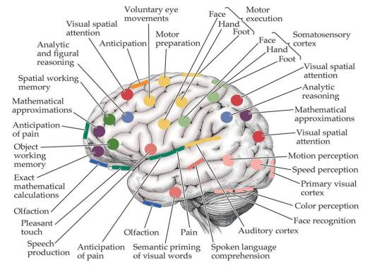 图 11 一张简单描述左脑外侧皮层部分功能分区的示意图