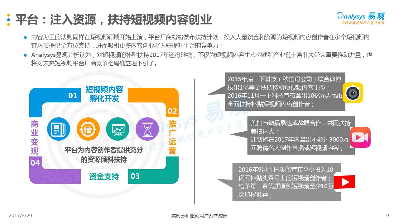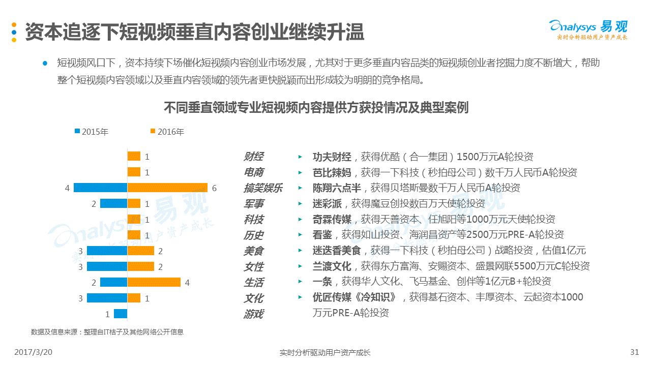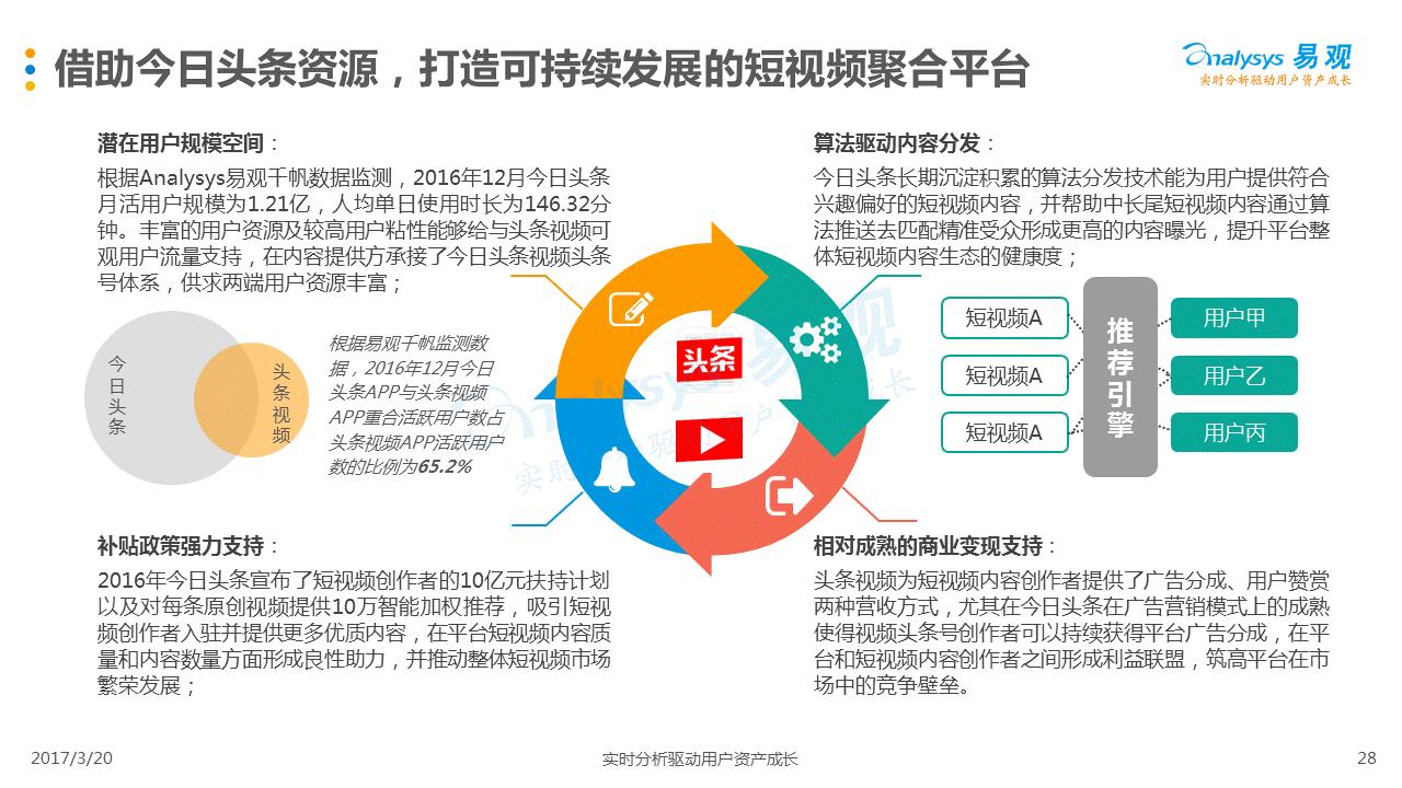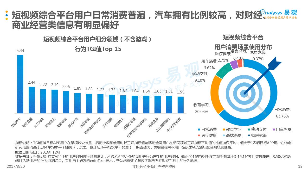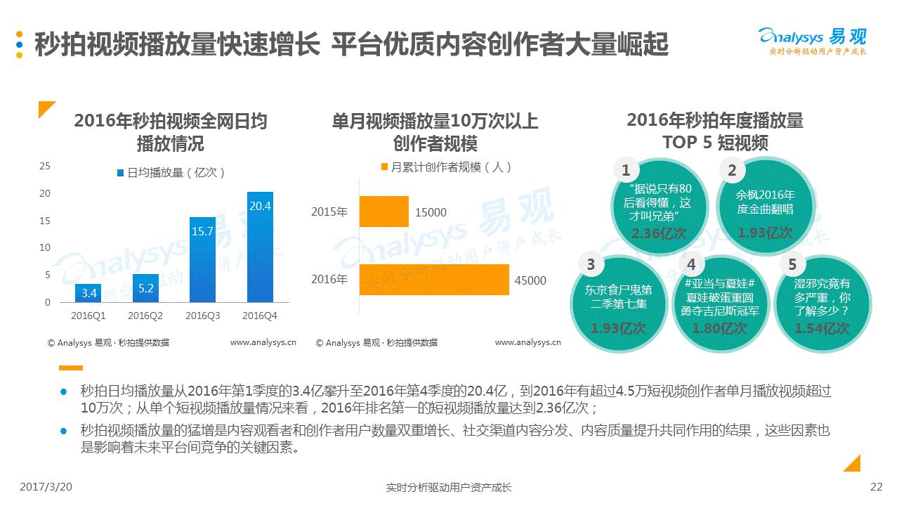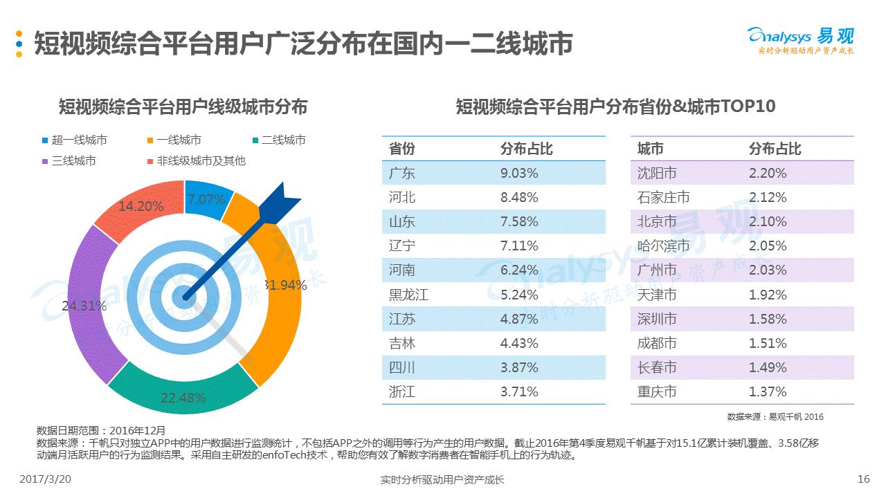 2016年,移动互联网用户对移动视频内容消费持续发酵,其中以移动短视频尤为引人注目。短视频全网覆盖用户规模不断攀升,为移动互联网带来巨大流量,同时也为优质短视频平台及内容创业者获得巨额融资形成支撑,并为其商业化探索提供助力。本次专题分析将从发展现状、典型企业、未来趋势等方向对中国移动短视频市场做分析解读。