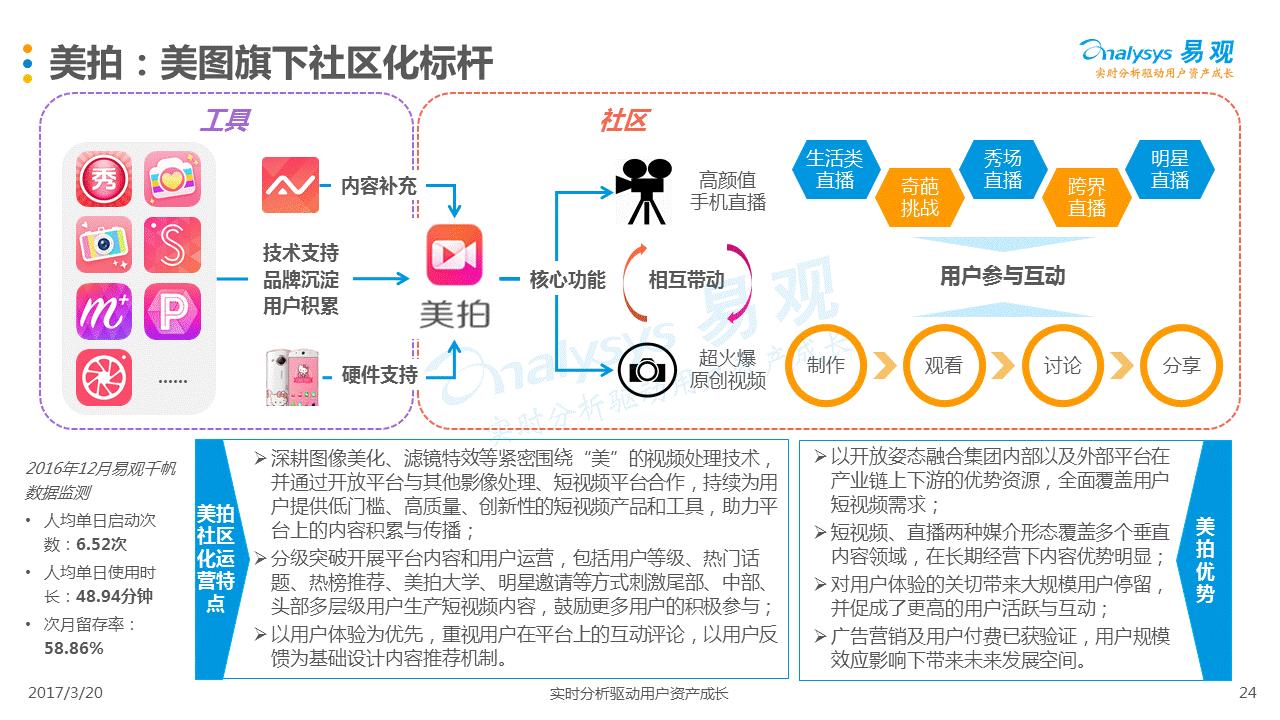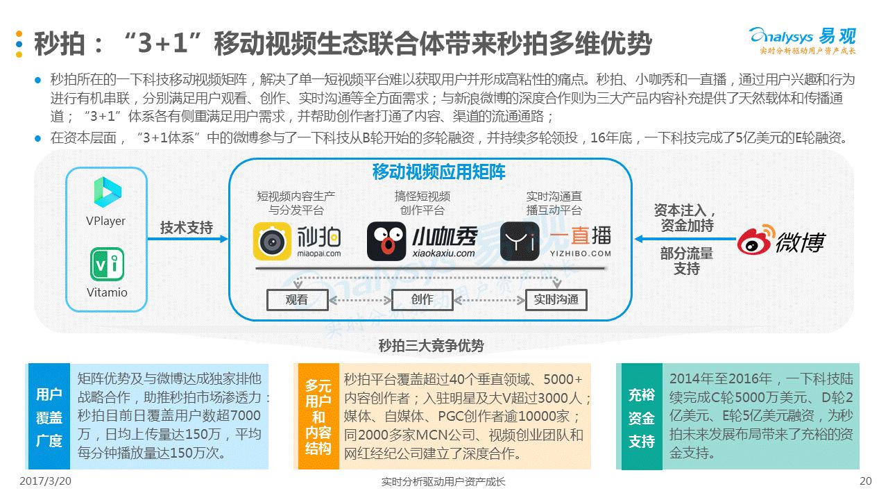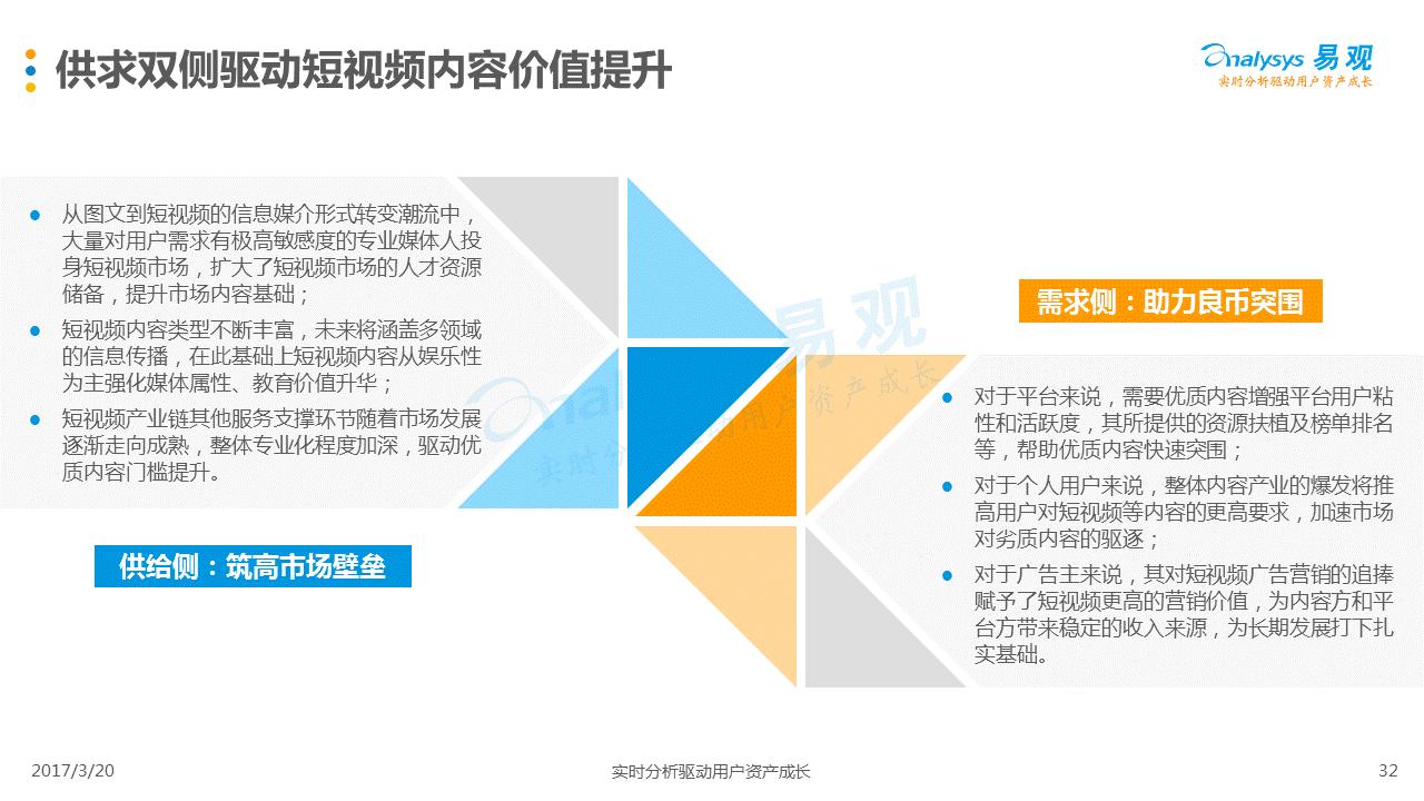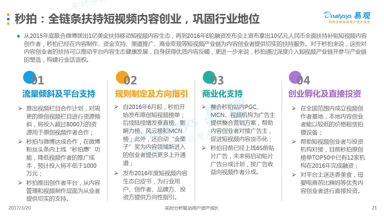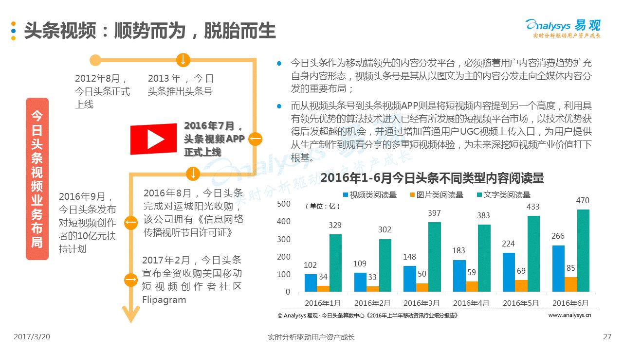 2016年,移动互联网用户对移动视频内容消费持续发酵,其中以移动短视频尤为引人注目。短视频全网覆盖用户规模不断攀升,为移动互联网带来巨大流量,同时也为优质短视频平台及内容创业者获得巨额融资形成支撑,并为其商业化探索提供助力。本次专题分析将从发展现状、典型企业、未来趋势等方向对中国移动短视频市场做分析解读。