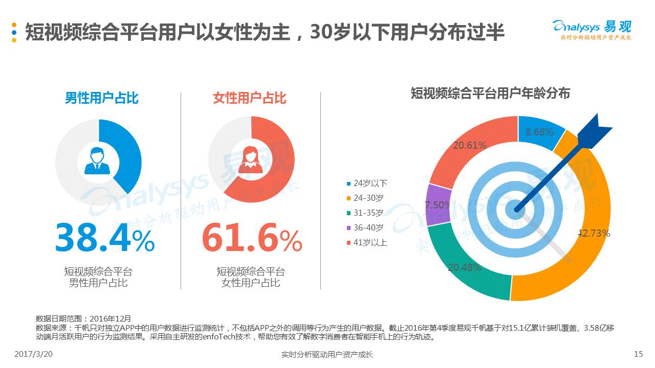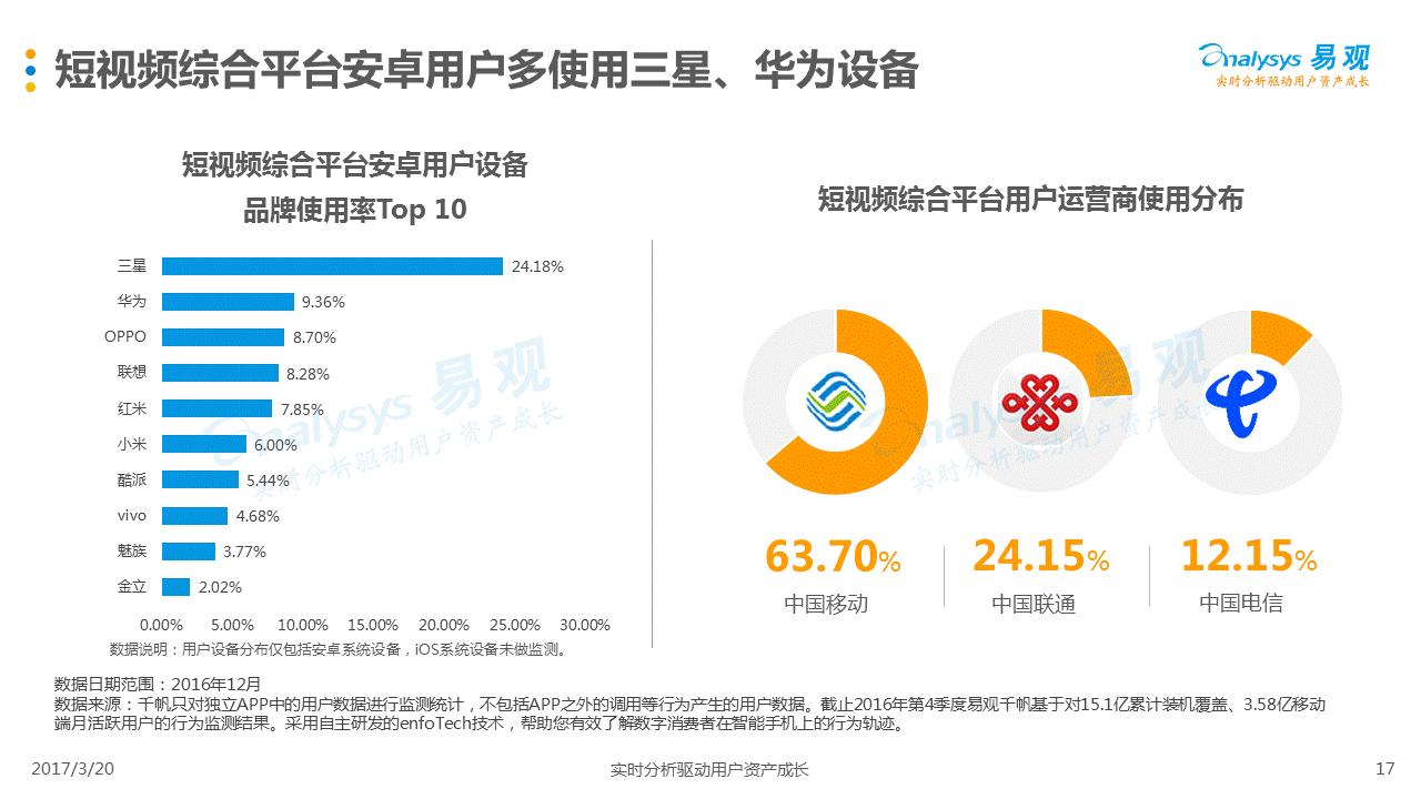 2017中国移动短视频市场:以女性用户为主,安卓用户以三星华为居多