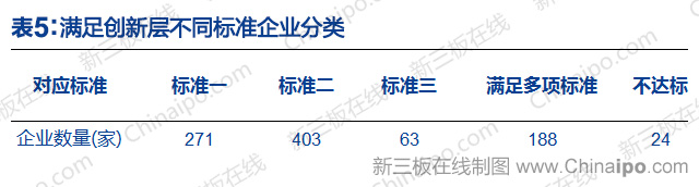 而满足“标准三”的企业则只有63家,仅占创新层6.64%,这与之前我们分析得出新三板挂牌企业普遍规模较小的结论是一致的。
