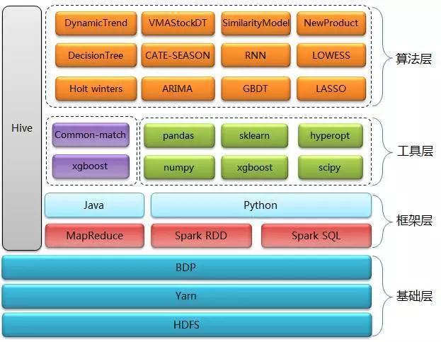 预测系统核心层技术主要分为四层:基础层、框架层、工具层和算法层。