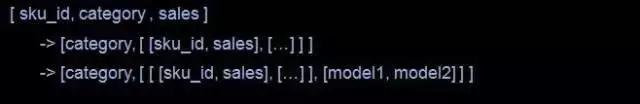 如果两个RDD需要在groupByKey后进行join操作,可以使用cogroup转换操作代替。比如, 将历史销量数据按品类进行合并,然后再与模型文件进行join操作,流程如下: