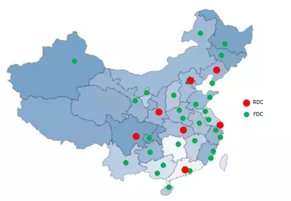 目前京东在全国范围内的运营256个大型仓库,按功能可划分为RDC、FDC、大件中心仓、大件卫星仓、图书仓和城市仓等等。RDC(Regional Distribution Center)即区域分发中心,可理解为一级仓库,向供货商采购的商品会优先送往这里,一般设置在中心城市,覆盖范围大。FDC(Forward Distribution Center)即区域运转中心,可理解为二级仓库,覆盖一些中、小型城市及边远地区,通常会根据需求将商品从RDC调配过来。