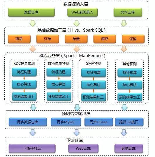 预测结果输出层:将最终预测结果同步回京东数据仓库、MySql、HBase或制作成JSF接口供其他系统远程调用。