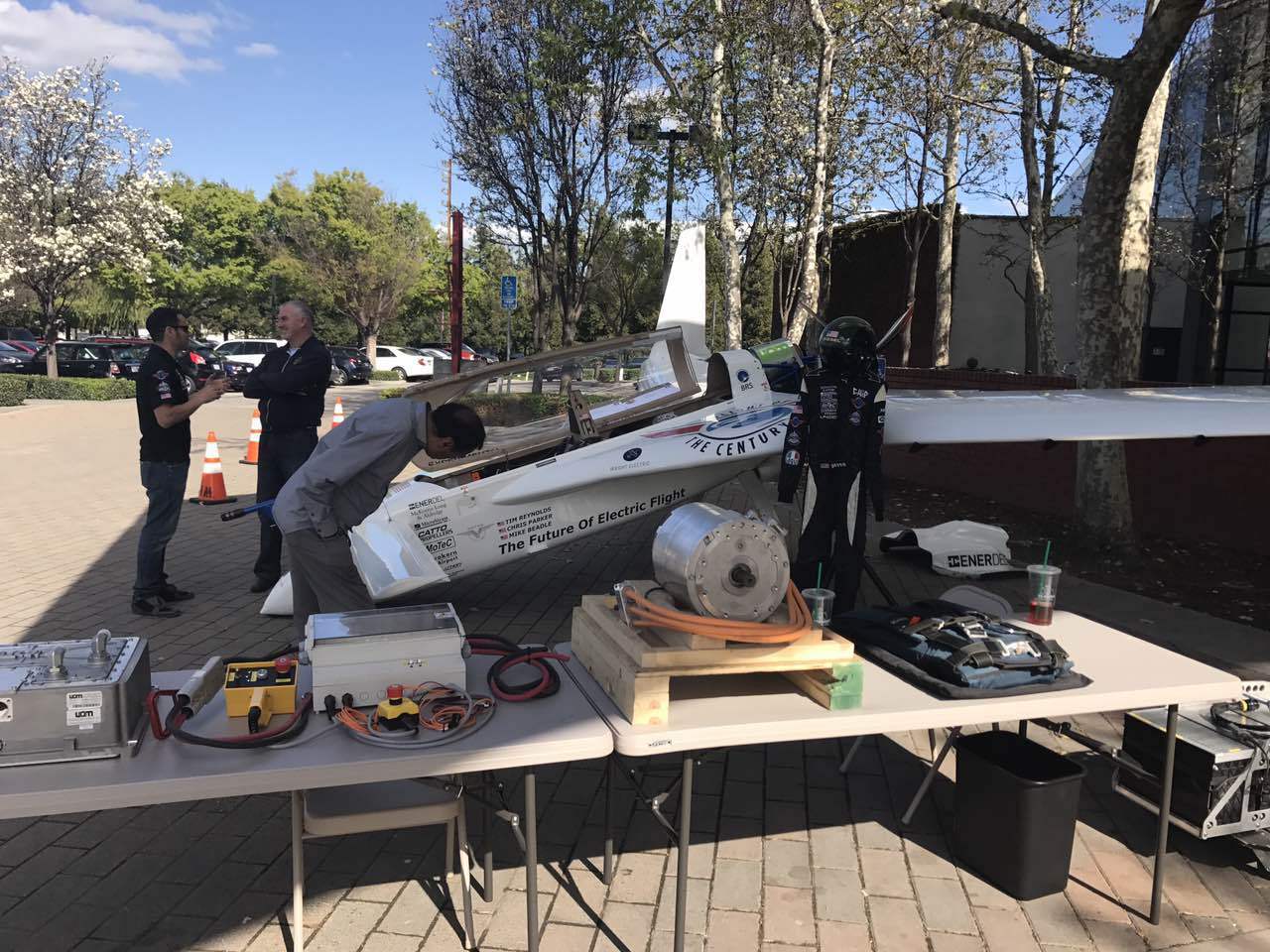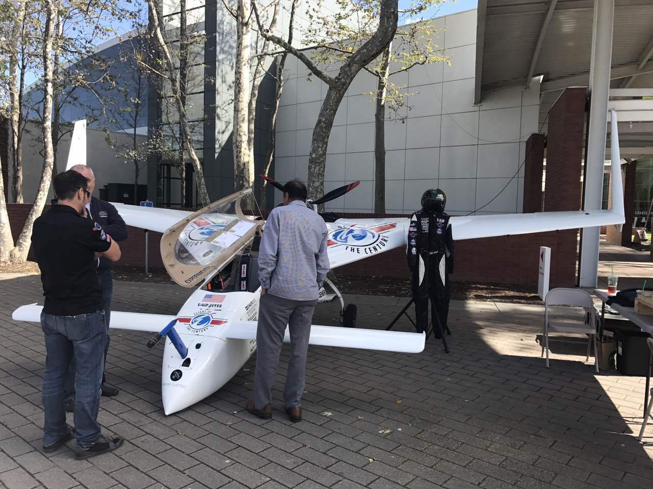 Wright Electric公司在YC孵化器路演日上展示的单座试验机型,由36氪硅谷小记者在现场拍摄