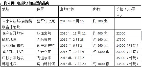 3月22日,再次推出3宗自住型商品房地块,分别位于大兴区瀛海镇、朝阳区管庄乡、门头沟区永定镇,前两块地销售限价29000元/平方米(含全装修费用),门头沟区永定镇地块销售价格23000元/平方米(含全装修费用),三宗地块挂牌竞价截止时间为4月25日15:00时止。