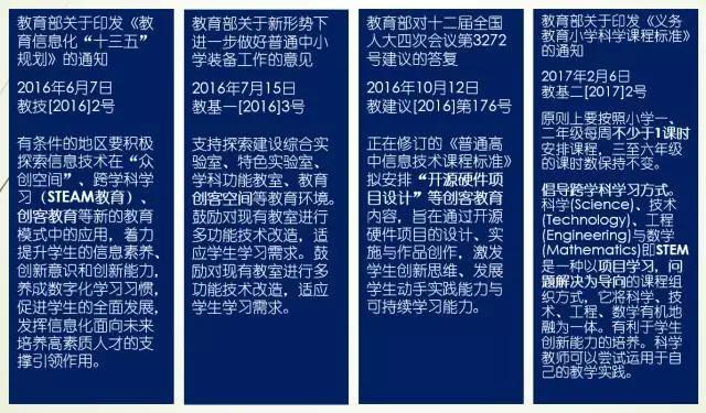 最近一年教育部在各项文件中以及目前积极推进的各类课程课标修订工作中都强调了对创客教育的重视和引导: