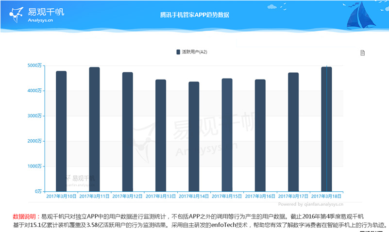 腾讯手机管家app规模(2017.3.10-2017.3.18)(数据来自易观千帆)