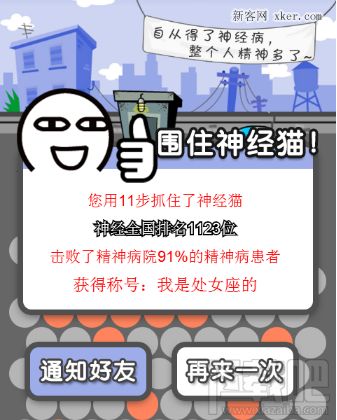 而且这款游戏,除了严格遵循“参与门槛低”这一原则之外,也很好的利用了人们的“攀比”心理。试想一下,如果我们看到朋友发了这么个链接,说他“只用了11步,击败了全国91%的精神病患者”,我们会不会很想证明自己比他厉害,看看自己能用几步达成目标。这种攀比心理,既增加了活动的趣味性,又强化的用户参与冲动。
