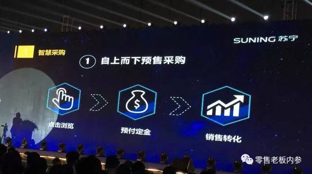 第一个方面是自上而下的预售式的采购。通过采集一些数据,点击浏览,对商品点击浏览的情况,放到购物车里面进行预付定金的,最终在产品面世过程当中产品转化的比例等等。知道这些数据以后,零售企业就自然而然知道要下什么样的订单,来满足市场的需求。