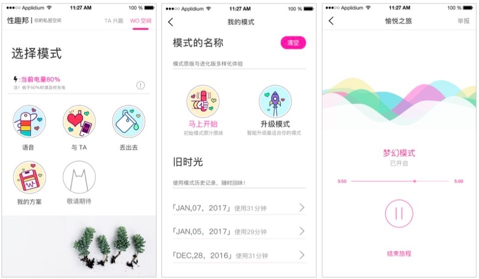 不过,两只猫创始人杨淏认为,人工智能的关键在于深度学习。他介绍,两只猫的女性情趣用品iTOYSEX可以通过智能算法,根据女性声音频率、阴道收缩频率、历史使用数据等来进行数据分析和学习,以此得知女性下一秒诉求并作出伸缩速度和震动频率的反馈,即实现产品自主伸缩、解放双手。如用户出现反馈需求不尽人意时,可通过语音控制来纠正产品伸缩速度和震动频率。只要自己使用的次数越多,产品就越适用于自己。