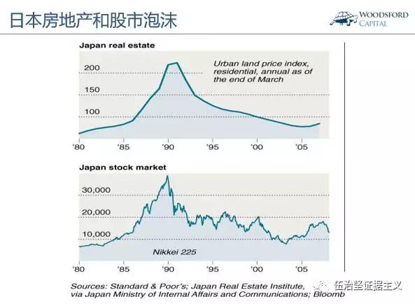 但是,好景不长。在1990年左右,日本的股市和房市泡沫在毫无先兆的情况下开始破裂,从此开始了长达20年,甚至更长的“失落期”。一直到今天,日本的房价和股价还是远远不及1989年时达到的高峰。