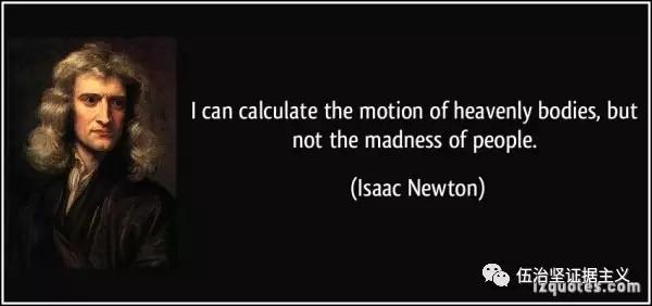 1720 年,英国发生了历史上非常有名的南海公司股价泡沫破裂事件,该公司的股票价格在短短一年中上涨10 倍,然后猛跌90%,令无数投资者损失惨重。这些蒙受损失的投资者中,包括了一位伟大的数学家:伊萨克∙牛顿。牛顿在这次事件中损失了大约2万英镑,其购买力大约相当于2002年的300万美元。后来牛顿说:我可以精确计算天体的运行,但却无法估计人类的疯狂程度。可见即使是最聪明的科学家,也免不了犯非理性错误的时候。