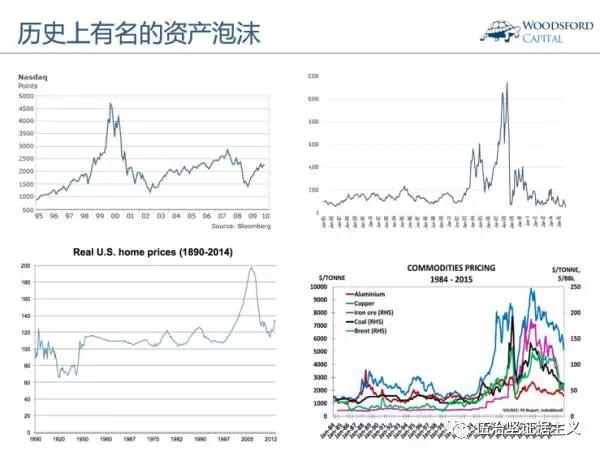 像上文中提到的荷兰和日本的资产泡沫,历史上还有很多。比如1999年左右的互联网泡沫,2008年左右的世界散装船运费(Freight)泡沫,2008年的美国房地产泡沫,以及2012年左右的大宗商品价格泡沫。所有这些泡沫都经历了酝酿--》上冲--》历史新高--》瞬间破灭的相似过程。