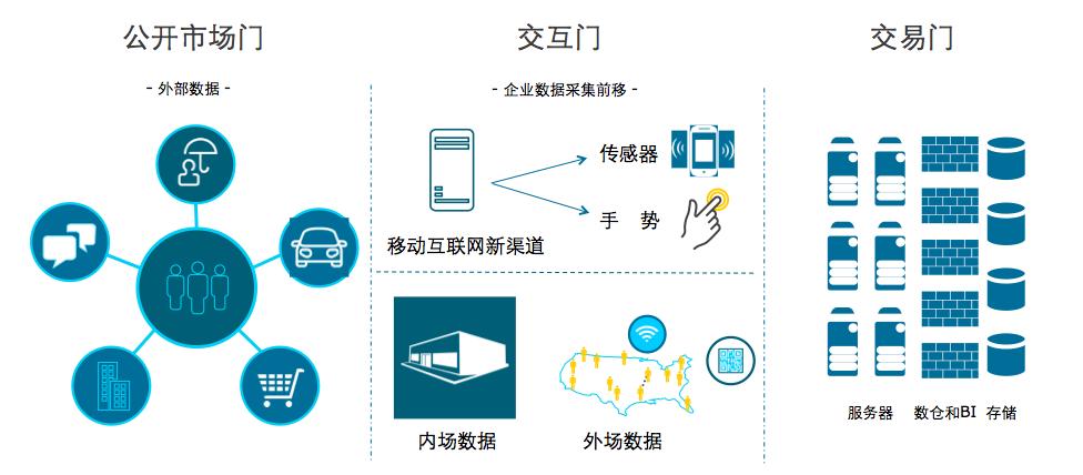 从前面的M、P的因素中不难看出,其中有一个核心关卡在于数据可用性能力,即Data Availability。今天的数据可用性能力的构建,同样由于科技和移动互联网的变迁,需要考量的关键点也发生了很大的变化。 企业需要穿越所谓“数据的三重门”来看待自己的可用数据在哪里,而不是交易门里面的数据自己自然获取,外部的数据以简单的交易交换来获取的简单做法。