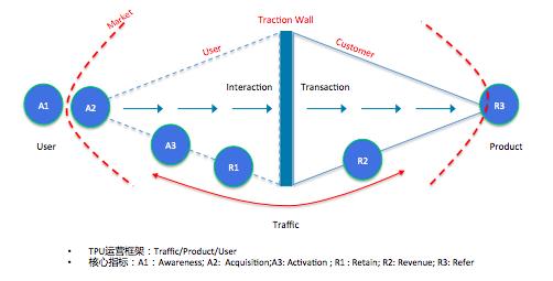 所谓3A3R+TPU的方法论体系,示意图如下,即从流量、用户、用户的角度,从Customer Journey(消费旅程)的通路以数据来运营3A3R的核心指标。