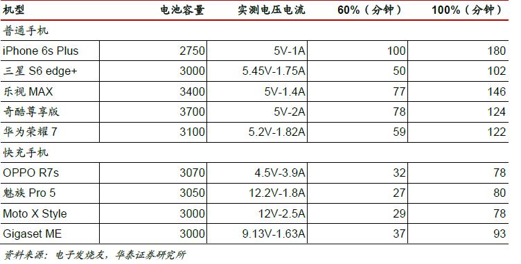 快充技术目前的发展速度是比较快的。高通的Quick Charge系列,联发科的Pump Express系列,OPPO VOOC方案三种主流的阵营占据国内主要的快充市场。此外包括华为海思的FCP (Fast Charge Protocol),德州仪器的MaxCharge等技术也在积极推广。搭载高通快充技术的手机有小米4C、HTC ONE、乐视MAX2等,搭载联发科快充技术的手机有魅族MX5、金立M5、蓝魔MOS1 Max等,OPPO和华为的快充技术主要服务于自家的手机产品。