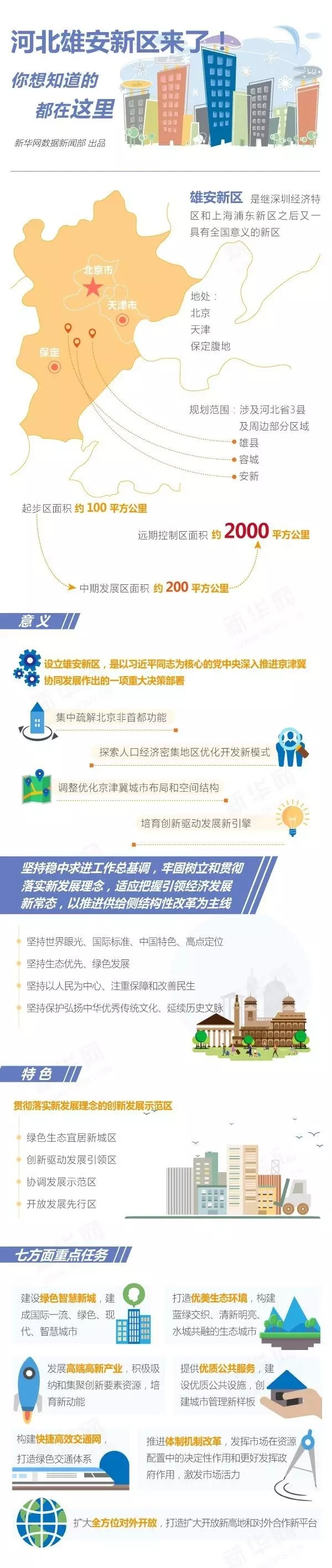 3,新区的战略功能——习近平明确指示,要重点打造北京非首都功能疏解集中承载地,在河北适合地段规划建设一座以新发展理念引领的现代新型城区。“疏解北京非首都功能,探索人口经济密集地区优化开发新模式。”(设立雄安新区,是以习近平同志为核心的党中央深入推进京津冀协同发展作出的一项重大决策部署,对于集中疏解北京非首都功能,探索人口经济密集地区优化开发新模式,调整优化京津冀城市布局和空间结构,培育创新驱动发展新引擎,具有重大现实意义和深远历史意义。)