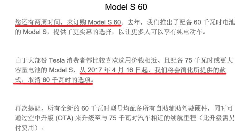 此外,特斯拉最近向客户发送邮件,预警4月15日将是特斯拉现阶段最便宜车型Model S 60和60D停止销售的截止期限,在邮件中,特斯拉再度对Model S和Model 3的产品定位进行了说明,简而言之就是Model S永远是特斯拉制造水平最高的轿车,业内人士评论,特斯拉此举将在短期内短期内Model S的销量激增。