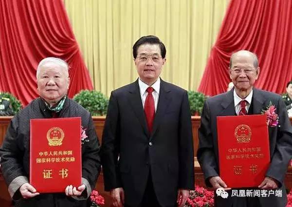 2012年2月14日,吴良镛(左)与物理学家谢家麟荣获2011年度“国家最高科学技术奖”。
