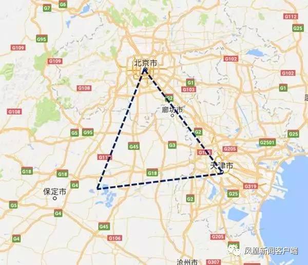 可见,未来京津冀地区将再现这种北京-天津-保定(雄安)的三角关系。