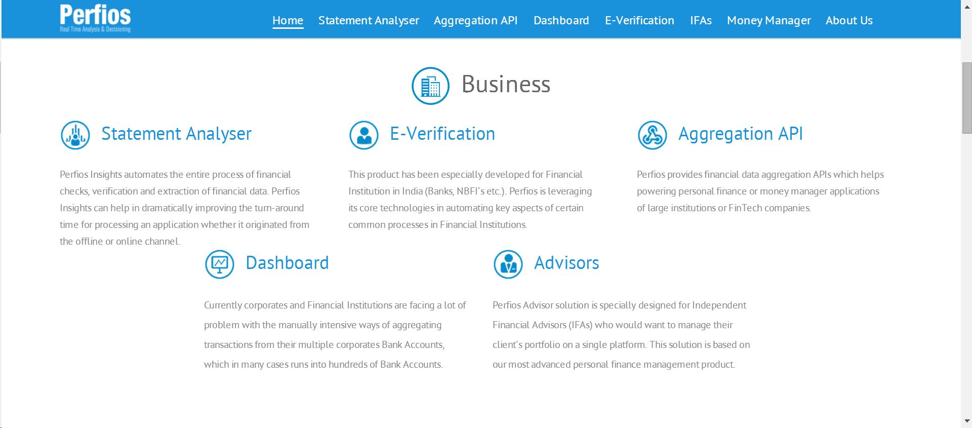 根据 Perfios 官网信息,Perfios 创立于 2008 年,主要提供财报分析、电子化验证、API 外接、企业征信报告和行业数据分析等主要五个功能。