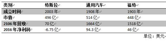 据统计,2016年特斯拉全年营收70亿美元,销量76285辆(未能实现全年销售8~9万辆的既定目标);福特营收为1518亿美元,销量665万辆;通用汽车营收1664亿美元,销量1000万辆,以此计算,特斯拉的销量仅是福特和通用的1/87和1/131;营收仅为福特和通用的1/21和1/23。若要从利润作比较,福特为46亿美元;通用汽车为94.3亿美元,而特斯拉仍处于“烧钱”阶段,2016年全年亏损6亿美元。