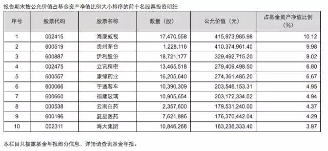 小编我用上了洪荒之力,扒了扒他们东方资管的基金的持仓,以下是东方资管旗下基金之一东方红中国优势在2016年12月31日的持仓,基本上可以看出仓位配置和布局是陈光明在演讲中提到的5个方向。