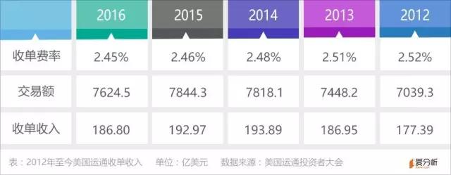 从支付行业发展趋势来看,目前中国已经进入移动支付阶段,领先于美国。微信和支付宝构建的移动支付体系完全绕开了银联,借鉴中国移动支付发展的经验,未来美国运通的收单业务可能受到移动支付较大的影响。