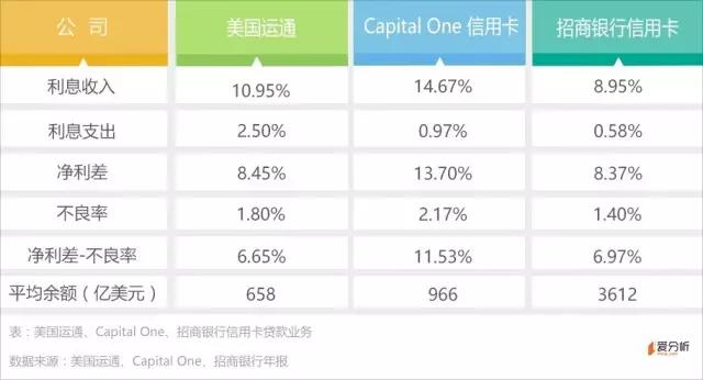 美国运通签账卡不生息,贷款完全来自信用卡。受定位人群、资金成本等因素的影响,美国运通信用卡贷款业务的盈利能力比Capital One信用卡业务要差。