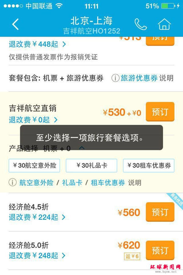 到了2015年,携程也早遭遇了同类吐槽,起码在买机票时,用户必须花30元在“航空意外险”、“自驾租车优惠券”和“礼品卡(任我游)”中三选一。