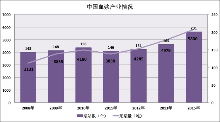 数据显示,2016年,中国血浆年需求量大约为13000吨,但2015年中国总采浆量不到6000吨,缺口超过50%。