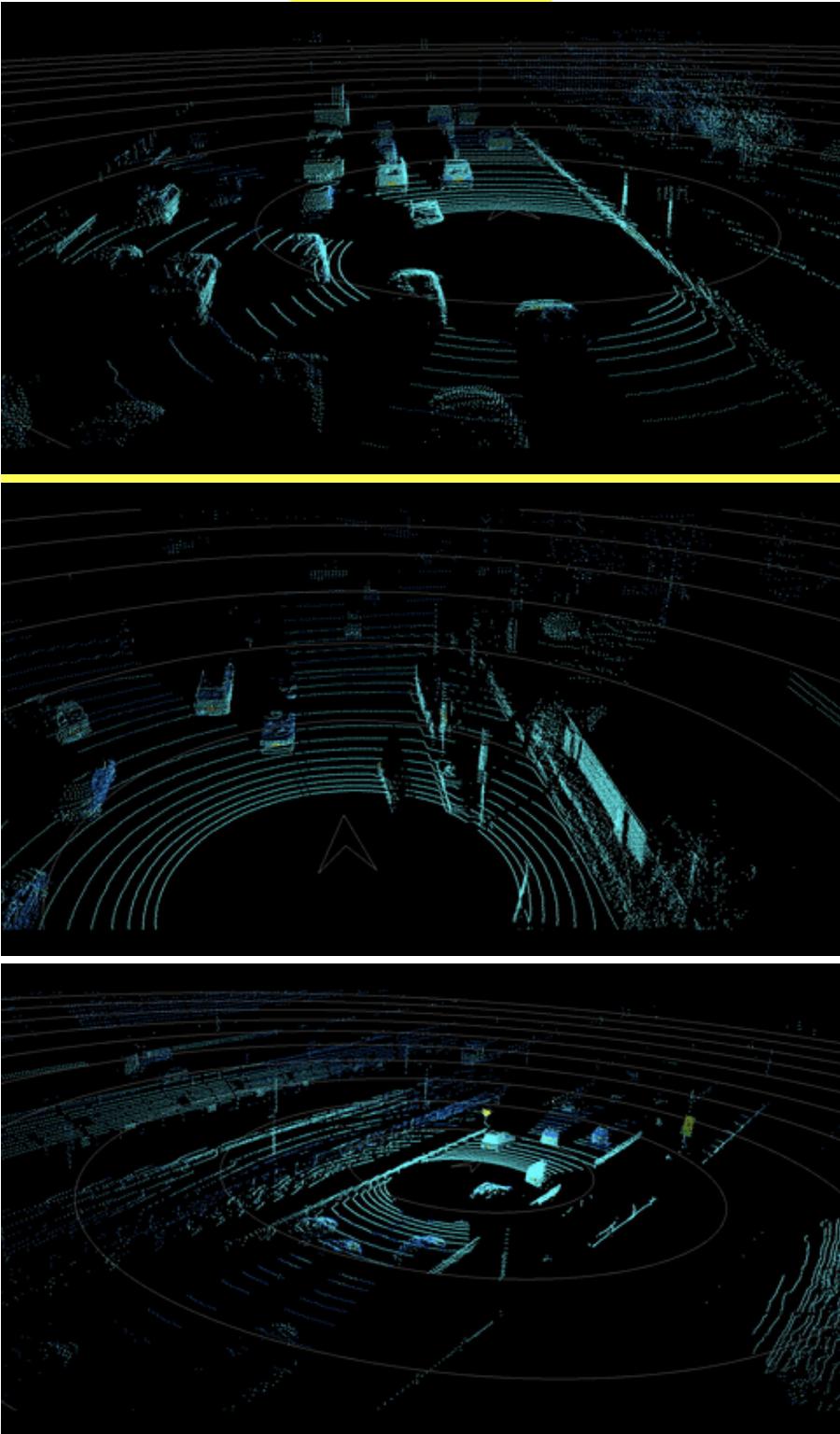 从禾赛40线和Velodyne 64线的模拟点云图里能清楚地辩认出人形,但是对于Velodyne 16线而言则完全看不出人形。