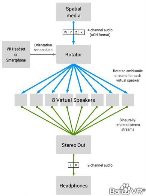 谷歌曾于2016年7月发布开源项目Omnitone,该项目的目的是实现普通耳机在VR环境中的3D全景音效,让用户获得更好的VR沉浸感,并公布了技术原理图。目前谷歌的VR项目包括了,Cardboard、Daydream和WebVR。