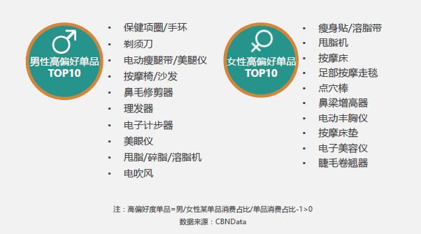在精致生活方面,个人护理消费市场依然以女性为主,男性和女性对精致的定义不同导致对产品消费偏好也有较大的区别。男性偏好剃须、鼻毛修理、理发等去毛类单品,女性的偏好较为广泛,减肥、按摩、增高鼻梁等产品的偏好度均较高。