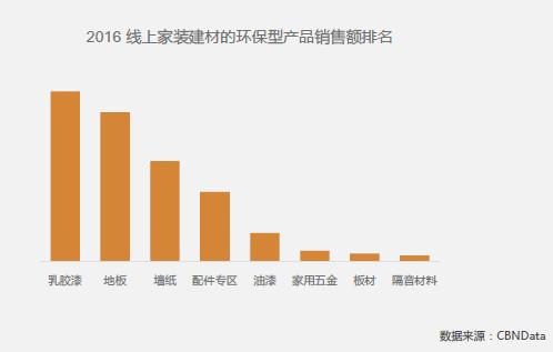 随着收入水平的不断提升,国人对健康、环保的要求也越来越高。以家庭装修主材料中与家庭成员直接接触的产品为例,CBNData《报告》显示,乳胶漆、地板、墙纸等家庭常见的建材产品居环保消费的前三位,并大幅度领先于其他一些家装材料。