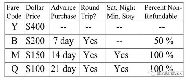 但是问题来了,航空业的资本家肯定要利益最最大化的,那么可以改改策略,看人下菜。比如顾客愿意提前24天前购买,而且会在目的地呆个周六晚上,那么这样的顾客,可以卖便宜一些,如果你是火上房的商务客户,那我就价格高一些,狠狠宰一刀,这样那就产生了上图绿色那些块收益。
