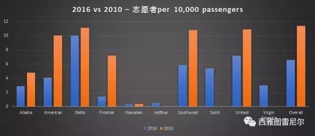 2016年愿意当志愿者的从11%降到了6%左右,志愿者比例变化最小的是Delta。 Delta其实是玩超售比较多的,但是对人还算比较真诚的。