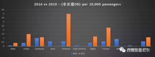 如果在志愿者不够的情况下,那就进入了involunteer DB模式了,看下图数据非志愿DB比例,Delta是最低的,廉价航司SW是最高的。