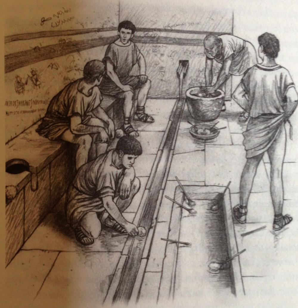 罗马公民在公共盥洗室里聊天。图片来源:《古罗马的一天》(A Day In The Life Of Ancient Rome)
