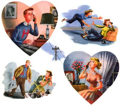 「合用线路会破坏人际关系…比如你在电话上约会,但有另外一个姑娘给你打来电话,那就惨了。挂电话的五分钟之后,每个邻居都知道你干了什么,包括你女朋友也会知道这件事。事实上,就有过女朋友闯进来,把正在打电话的俩人大骂一顿的真事。所以,打电话时一定要小心。」——作家 Donnie Johnson