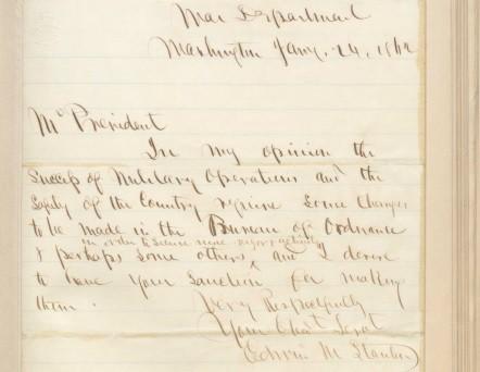 上图中的信来自美国战争部长埃德温·斯坦顿(Edwin Stanton),要求全面掌控电话通讯,林肯在背面草草写下「我批准战争部长在信中所述的事情上行使裁量权。签名:A.LINCOLN」