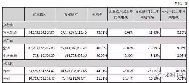 格力作为空调老大,在海外市场却落后于人。2016年中报显示,格力外销占比24%,2016年美的外销占比为43%,2016年上半年海尔外销为29%。格力外销毛利率21.2%,比内销低23个百分点,显示出格力品牌在海外溢价困难。